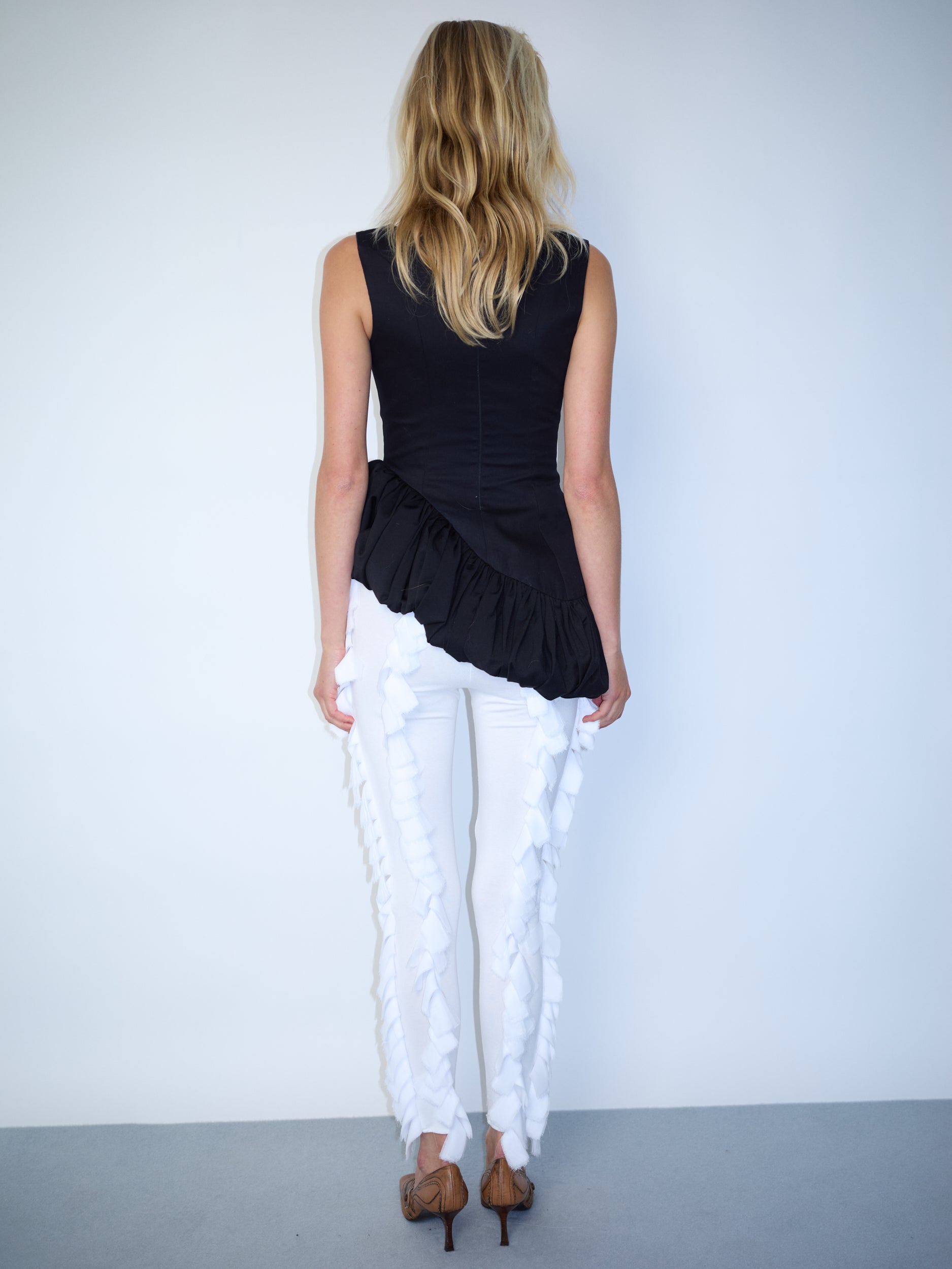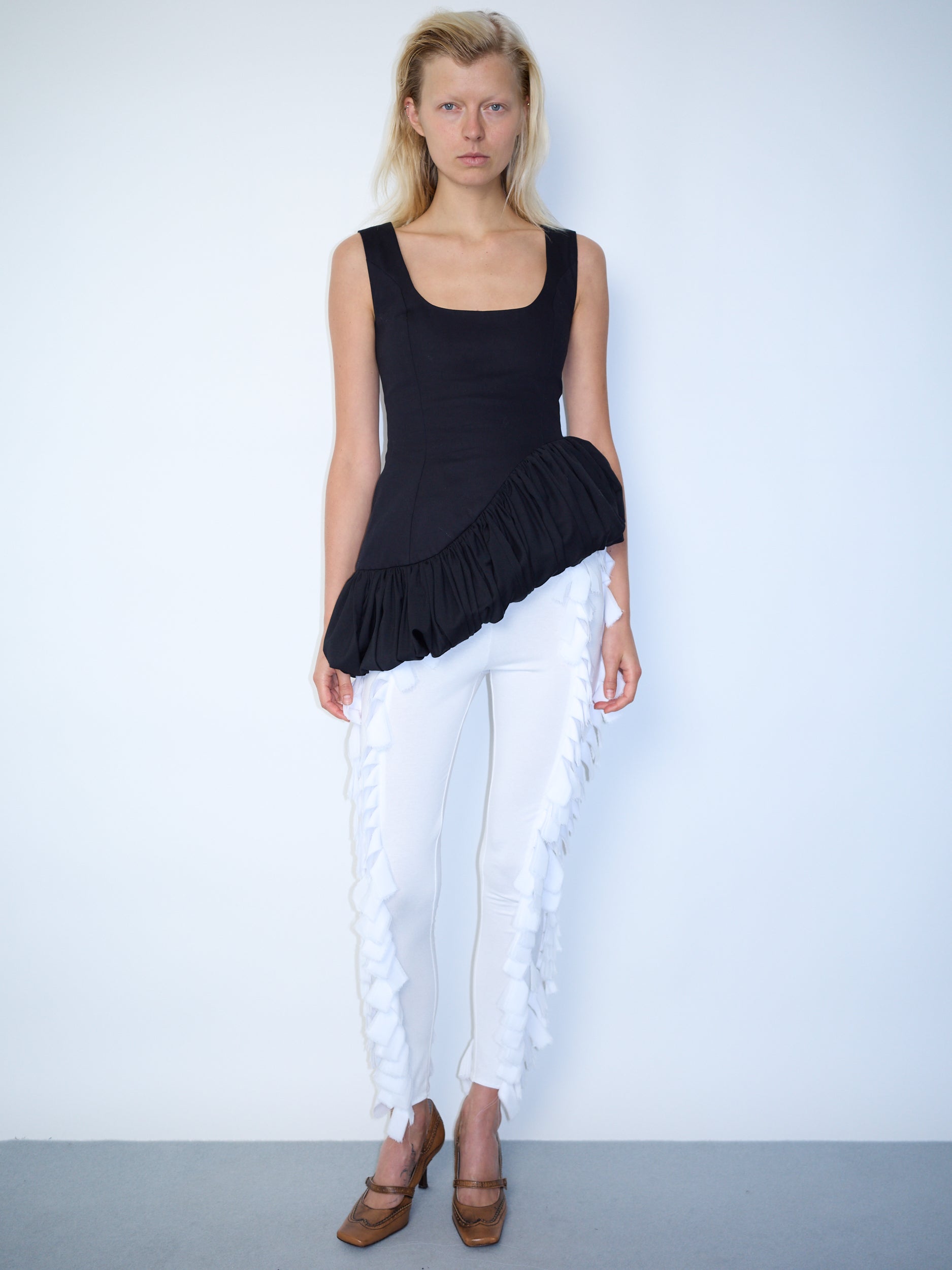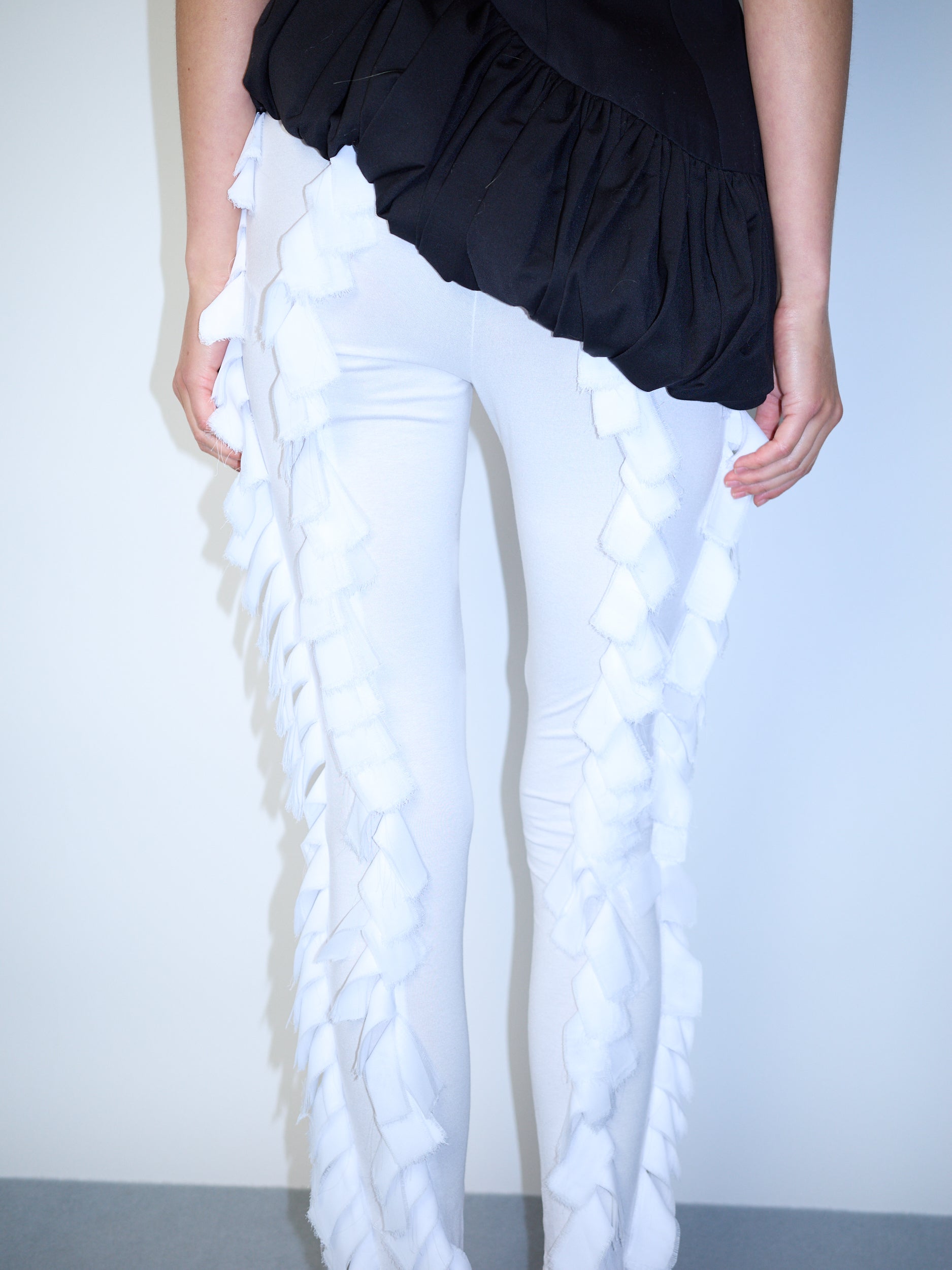 These sleek leggings are crafted from stretchy jersey for a comfortable, sculpted fit. Chiffon "feather" detailing along the front, side, and back seams adds texture and a touch of chic drama.